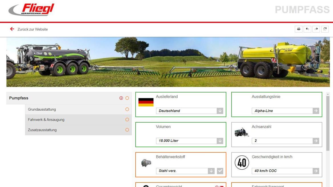 Fliegl’s management and development team take on every challenge and requirement of agriculture and try to find a solution. The result is a huge product range that covers all needs. In order to ensure that the farmer, contractor or dealer can find the right product quickly and easily, Fliegl created a configurator that has recently been integrated into their website, freely accessible to everyone.
